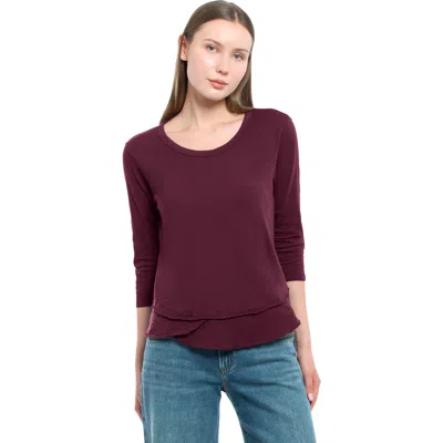 Long Sleeve Mock Layer Tee In Burgundy