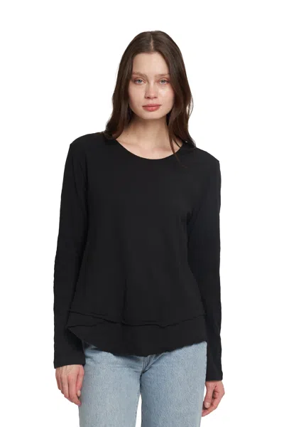 Long Sleeve Mock Layer Raw Hem Tee In Black