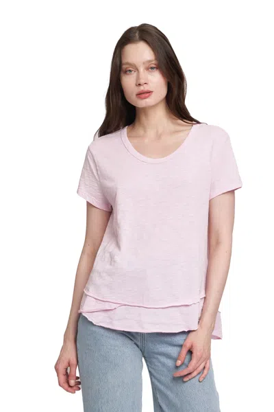 Short Sleeve Mock Layer Raw Hem Tee In Pink