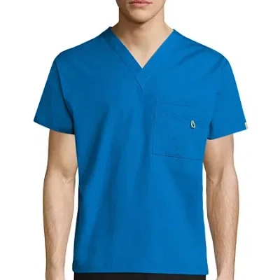 Wonderwork Unisex Adult Big And Tall V Neck Short Sleeve Tag Free Scrub Top In Blue