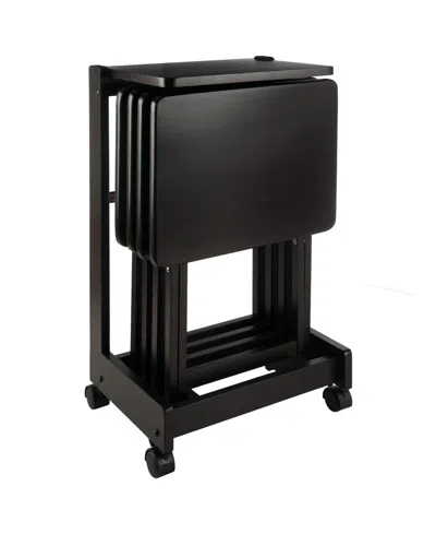 Brienda 5-piece Wood Flip Top Snack Table Set In Coffee