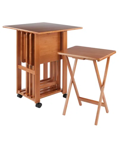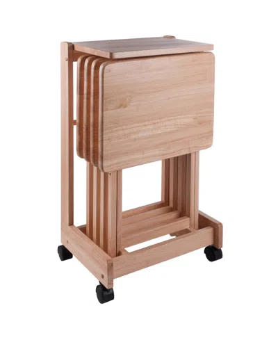 Brienda 5-piece Wood Flip Top Snack Table Set In Natural