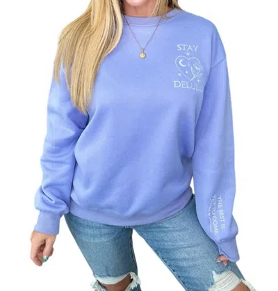 Stay Delulu Scuba Sweatshirt In Periwinkle In Blue