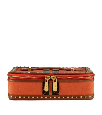 Ida Canvas And Leather Trunk Jewelry Box In Orange