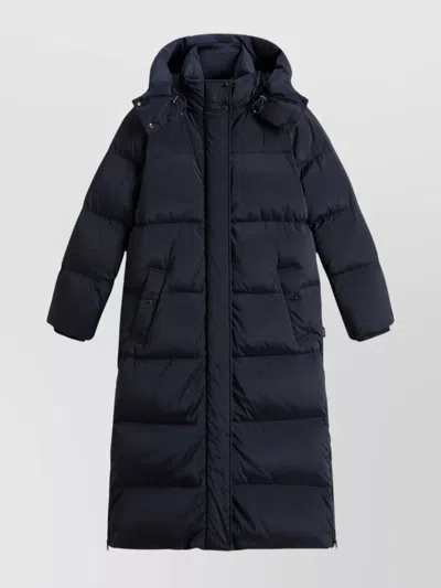 Long Down Parka Adjustable Hood In Blue
