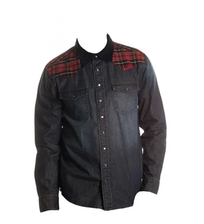 Men's Long Sleeve Shirt Shirt L/s "the Works" Denim/leopard