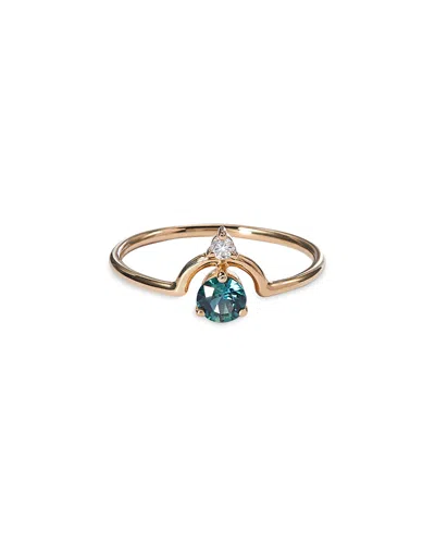 14k Yellow Gold Small Nestled Sapphire And Diamond Ring In Blue/gold