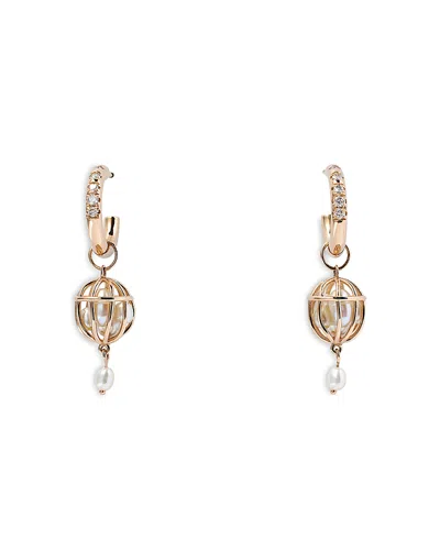 14k Yellow Gold Universe Diamond & Cultured Freshwater Pearl Earrings In Gold/white