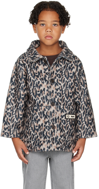 Kids Beige Daily Long Bomber Jacket In Leopard