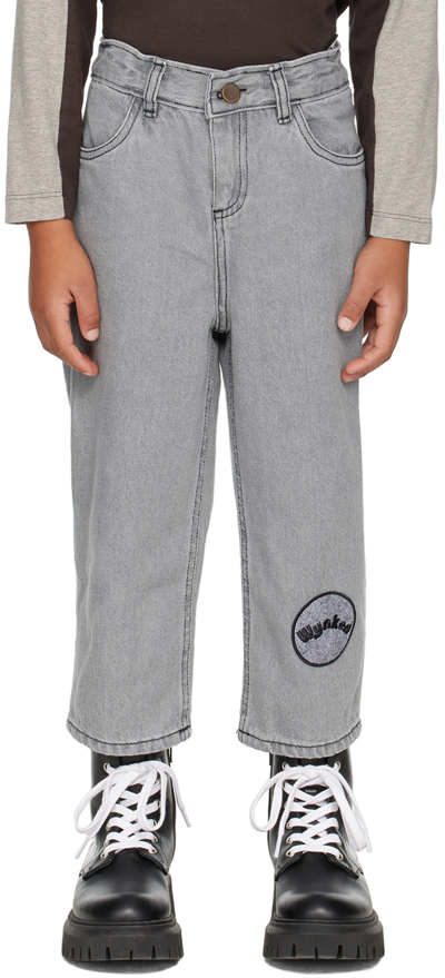 Kids Gray Balloon Jeans In Ice Grey Denim