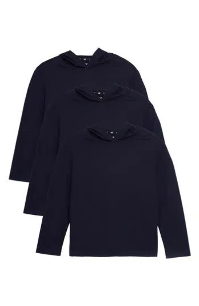 Xray Kids' 3-pack Hooded Long Sleeve Cotton T-shirts In Blue