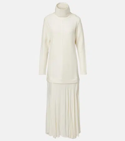 Paneled Wool-blend Maxi Dress In White