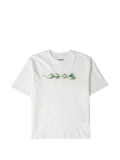 Flame-graphic T-shirt In White