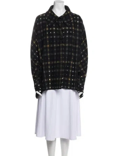 Pre-owned Virgin Wool Plaid Print Coat In Black