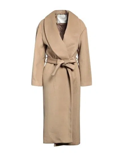 Woman Coat Khaki Size 6 Acrylic, Polyamide In Beige
