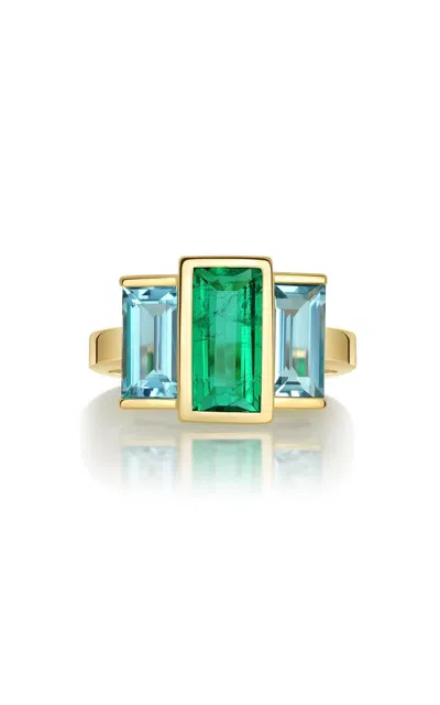 18k Gold; Aquamarine And Emerald Deco Ring In Multi