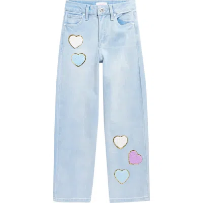 Kids' Chenille Heart Patch Straight Leg Jeans In Blue