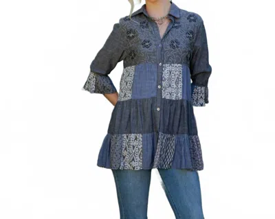 Boho Western Pintuck Denim Top In Blue