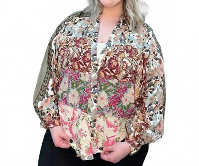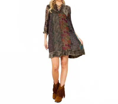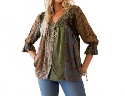Vintage Bohemian Patchwork Velvet Top In Gravel In Multi