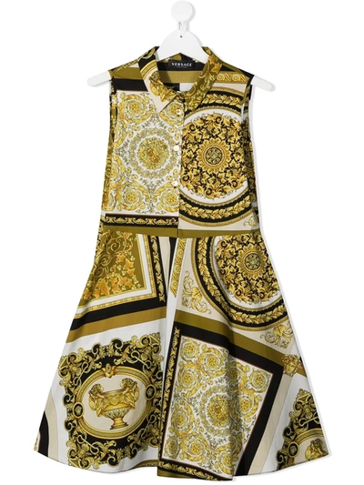 Kids' Barocco-print Sleeveless Dress In Bianco/oro