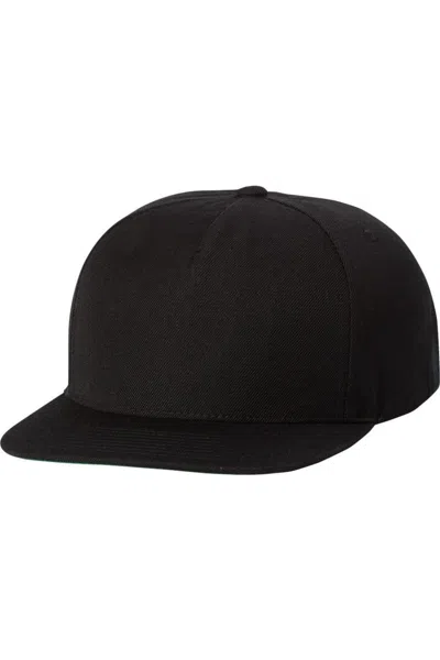 Flat Bill Snapback Cap In Black