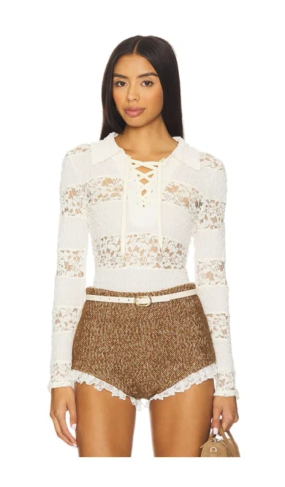 Lace Asymmetric Long-sleeve Dress In Weiss