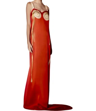 Long Silk Dress With Rock Straps In Red/gold In Multi