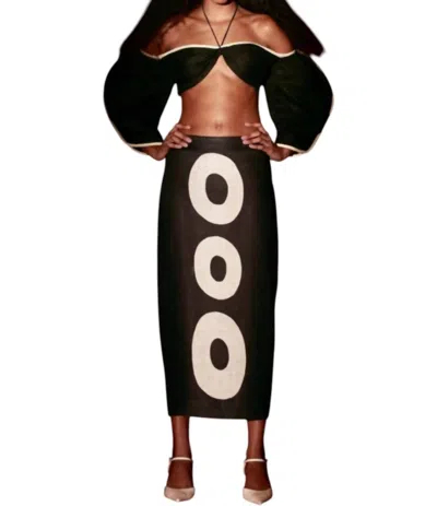 Straight Linen Bubbles Skirt In Black