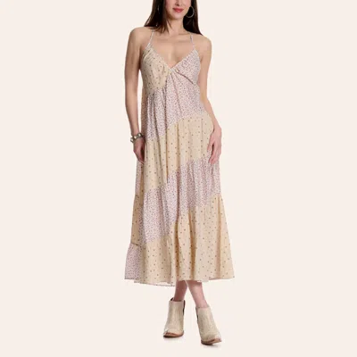 Women's Multi Color Diagonal Patchwork Print Cross Back Maxi Dress In Brown