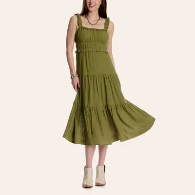 Women's Olive Green Sleeveless Ruffle Tiered Midi Dress