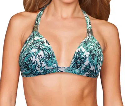Plunge Triangle Halter Bikini Top In Peacock Bandana In Green
