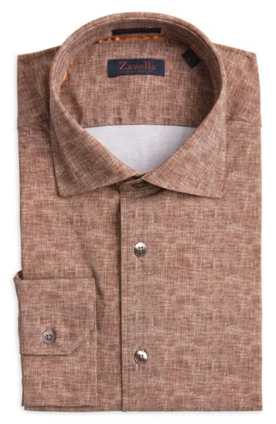 Jagged Heathered Herringbone Print Knit Nylon Blend Dress Shirt In Brown