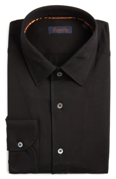 Lord Solid Knit Cotton Blend Dress Shirt In Black