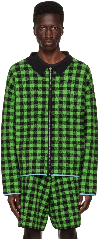 Black & Green Luke Cardigan In 012 Black-grass