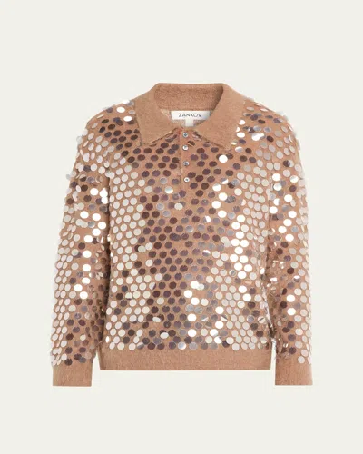 Men's Sequined Mohair-blend Polo Sweater In Brown