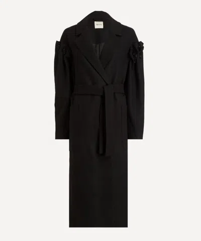 Zaria Bead-embellished Belted Wool Coat In Grey