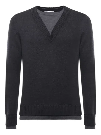 V-neck Merino Wool Jumper In Black