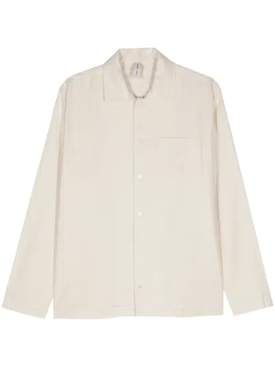 Cutaway-collar Raw-silk Shirt In Neutrals