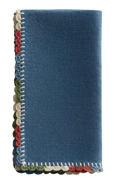 Starry Hand-embroidered Linen Napkins (set Of 4) Anut Cairo Abask Gift Set In Blue