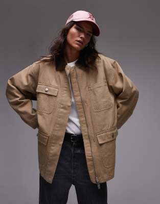 Oversized Workwear Barn Jacket In White