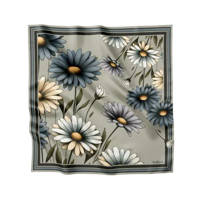 Women's Blue / Neutrals Blue Daisy Large Square Silk Scarf