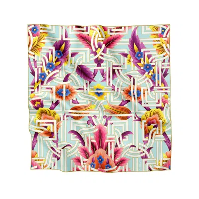 Women's Blue / Pink / Purple Pomona Maze Large Luxury Square Silk Scarf In Multi