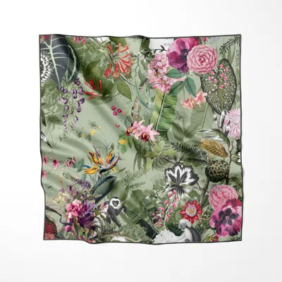 Women's Green / Pink Silva Flora Large Luxury Square Silk Scarf In Multi