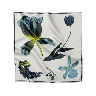Women's Blue / Neutrals Dusk Bloom Square Silk Scarf