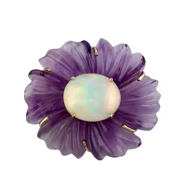 Women's 14k Yellow Gold Carved Purple Amethyst & Opal Flower Pendant In Blue