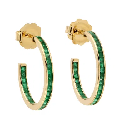Women's Gold / Green Natural Emerald Yellow Gold Hoop Earrings Handmade Jewelry In Multi