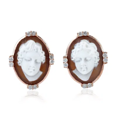 Women's Rose Gold / White 18k Rose Gold With Diamond & Shell Cameos Stud Earrings In Metallic
