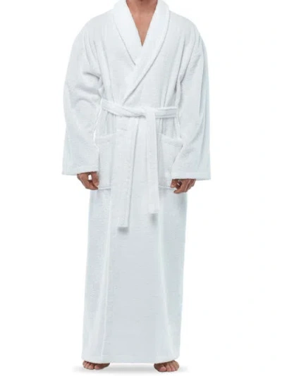 Mens Classic Shawl Collar Ankle Length Terry Bathrobe In White