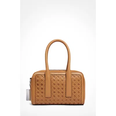 Paglia Di Vienna Weave Calfskin Luggage Tag In Brown