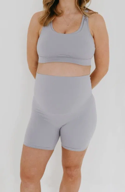 Athletic Maternity Bike Shorts With Supportive Belly Band In Silver